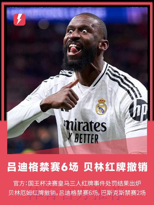 官方:贝林红牌取消 吕迪格将停赛6场巴斯克斯2场